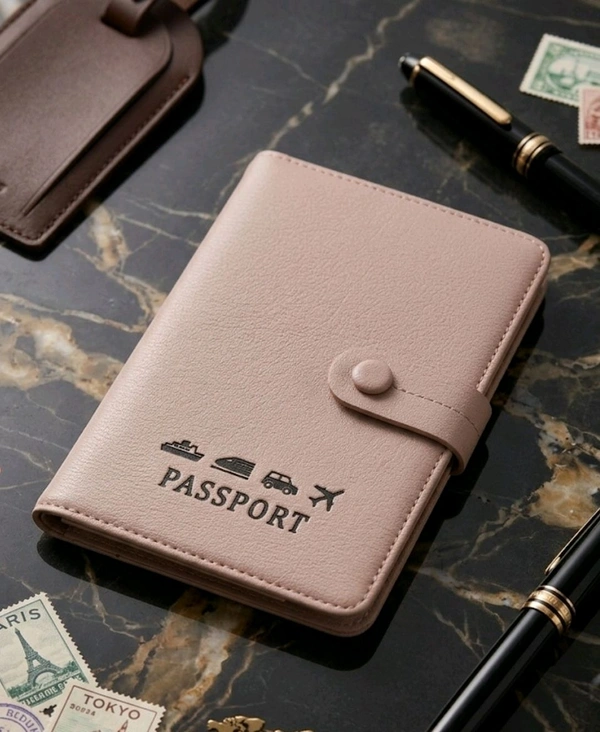 Travel Passport Holder Wallet | RFID Blocking Beige Document Organizer with World Map Design & Multiple Card Slots | Secure Travel Accessories for Men & Women