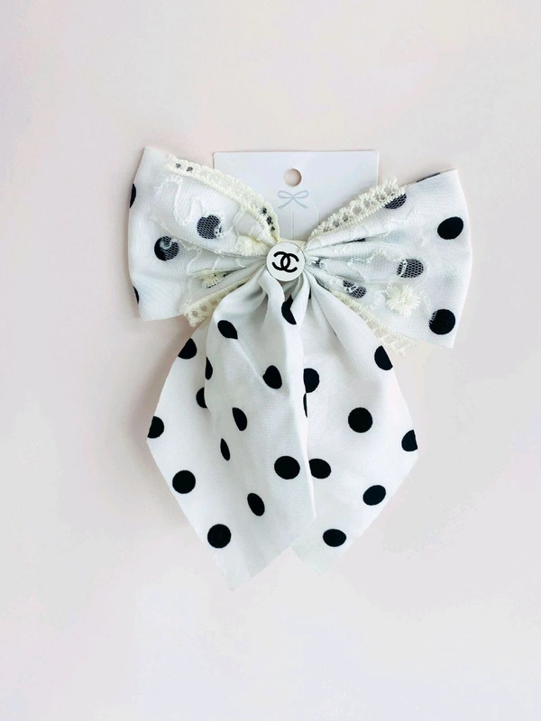 White Polka Dot Hair Bow Clip for Girls& Women|Elegant Handmade Accessory | Pretty Haven
